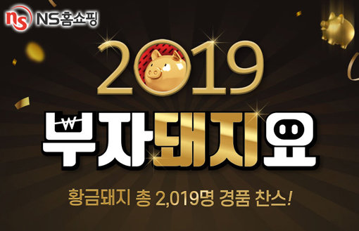 NS홈쇼핑이 31일까지 TV, 몰, 모바일, NS샵플러스 채널에서 ‘2019 부자돼지요’ 프로모션을 실시한다. 행사기간 3회 이상 구매고객 19명에게 황금돼지 골드바 37.5g(약 10돈)을, 1회 이상 구매고객 2000명에게 황금돼지 1g을 제공한다. 상품을 모바일 앱에서 구매한 돼지띠 고객(1947년, 1959년, 1971년, 1983년, 1995년생)에게 최대 2만원 한도의 20% 할인 골드쿠폰을 지급한다.