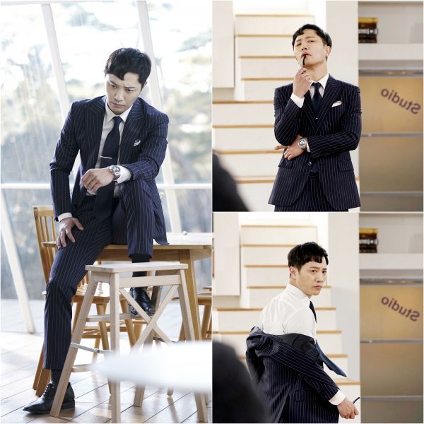 승률 100%의 유명세를 뽐내기 위해 화보 촬영도 마다하지 않는 괴물 변태 변호사 고태림. 스트라이프 슈트에 화이트 셔츠, 넥타이핀과 포켓치프, 그리고 남자의 자존심이라는 럭셔리한 손목시계까지. 네이비와 화이트 컬러의 조화로 세련된 슈트핏을 완성했다. 무엇보다 돈과 승률을 갈고리로 긁어모으겠다는 의지를 나타내며 ‘갈고리 머리’라 불리는 특이한 헤어스타일이 포인트. 포즈는 또 어떤가. 책상에 걸터앉아 한껏 자신의 멋짐에 취해있더니, 파이프를 입에 물거나 재킷을 반쯤 벗고 강렬한 눈빛으로 카메라를 응시한다.