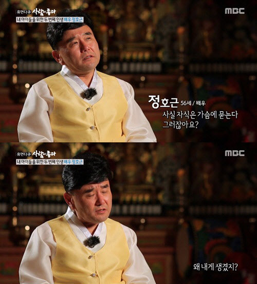 정호근은 “자식은 가슴에 묻는다고 하지 않나. 무슨 표현인가 싶었다”며 “‘왜 그런 일이 나에게 생겼을까’ ‘내가 전생에 너무 많은 죄를 지었나’ 별의별 생각을 다 했는데 ‘이런 거구나’ 싶더라. 이제 알 것 같다”고 털어놨다. 그러면서 “큰딸도 막내아들도 너무 보고 싶다”고 먼저 떠난 아이들을 그리워했다.