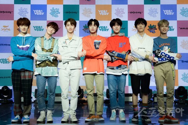 보이그룹 베리베리가 9일 서울 강남구 청담동 일지아트홀에서 열린 데뷔 앨범 ‘VERI-US(베리어스)’ 발매 기념 프레스 쇼케이스에서 포즈를 취하고 있다.