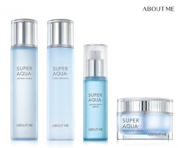 삼양사의 뷰티 브랜드 어바웃미가 ‘수퍼 아쿠아 라인’(사진)을 리뉴얼 출시했다. 피부의 수분길을 열어 빠르게 수분을 채우고, 수분 보호막을 형성해 장시간 보습을 유지하는 집중 보습 케어 라인이다. ‘워터 드롭 세럼’, ‘리프레쉬 워터’, ‘하이드로 에멀전’, ‘인텐시브 크림’ 등 4종으로 구성했다. ‘워터 드롭 세럼’은 액체 타입으로 촉촉한 수분케어를 돕는다.