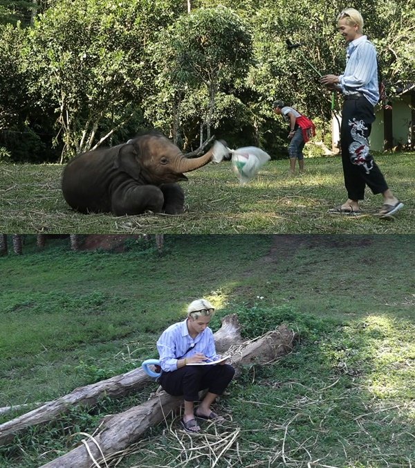 처음에는 공룡처럼 커다란 코끼리의 구애에 겁을 먹었던 송민호는 점차 마음을 열고 적극적으로 코끼리에게 다가갔다. 송민호는 이내 스케치북을 꺼내더니 들판에서 뛰어 노는 새끼 코끼리를 그리기도 했다. 특히 새끼 코끼리와 힘겨루기를 하며 노는 성훈의 모습을 그린 후 성훈에게 그림을 선물하자, 성훈은 깨알 같은 디테일까지 놓치지 않은 송민호의 눈썰미에 깜짝 놀랐다는 후문이다.