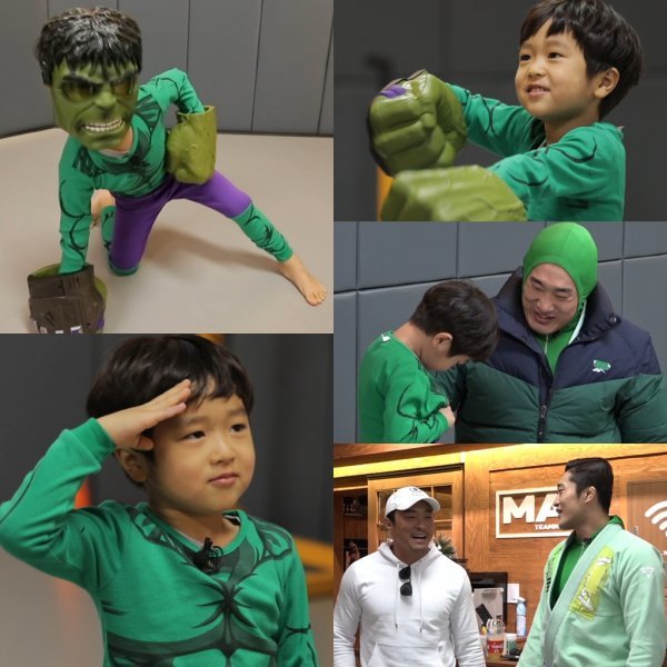공개된 사진 속 승재는 늠름하게 경례를 하고 있다. 눈을 반짝반짝 빛내며 헐크로 거듭나기 위한 훈련에 집중하고 있는 승재가 기특하다. 헐크 주먹부터 가면, 옷까지 완벽하게 착용하고 포즈를 취하고 있는 승재가 깜찍하다.