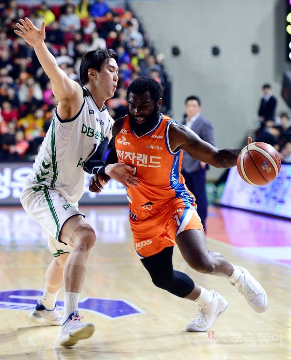 15일 인천 삼산월드체육관에서 열린 ‘2018-2019 SKT 5GX 프로농구’ 인천 전자랜드와 원주 DB의 경기에서 전자랜드 팟츠가 DB 수비를 피해 돌파하고 있다.