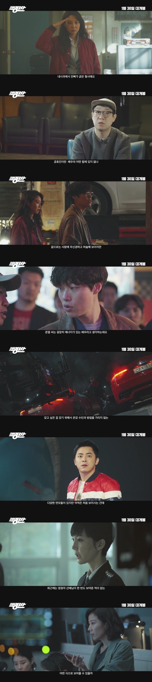 이번에 공개된 BIG뺑 제작기 영상은 ‘뺑반’에서 펼쳐질 다채로운 액션 장면들로 시작부터 이목을 집중시킨다. 먼저 한준희 감독은 “우리가 알고 있지 못한 경찰이란 직업의 부분을 보여주고 싶었다”며 한국영화 최초로 그려질 뺑소니 전담반의 특별한 이야기에 대한 기대감을 끌어 올린다. 내사과에서 뺑반으로 좌천된 엘리트 경찰 ‘은시연’ 역의 공효진은 “사건에 대한 포기를 모르는 의지의 경찰이다”라고 캐릭터를 설명하며 ‘뺑반’을 통해 보여줄 연기 변신을 예고하고, ‘질투의 화신’ 이후 두 번째로 호흡을 맞추는 조정석은 “적대관계로 만나기 때문에 신선했다”며 이들의 새로운 케미를 기대케 한다. 이어 본능적인 감각으로 사건을 쫓는 뺑반의 에이스 순경 ‘서민재’ 역의 류준열은 “굉장한 에너지가 있는 배우다”라는 한준희 감독의 말처럼 어리숙한 겉모습과 달리 능숙하게 수사를 하는 모습으로 입체적인 캐릭터를 표현하며 ‘뺑반’에서 펼칠 활약을 예고한다. ‘뺑반’을 통해 처음으로 악역에 도전하는 조정석은 “기존의 악역들과 다른 캐릭터인 것 같다”며 한국 최초 F1 레이서 출신 통제불능 사업가 ‘정재철’ 역으로 보여줄 색다른 면모와 존재감을 더욱 궁금케 한다. 여기에 자신만의 신념을 지닌 내사과 ‘윤지현 과장’과 뺑반의 든든한 리더 ‘우선영 계장’은 염정아와 전혜진이 맡아 각기 다른 걸크러시 매력을 전하고, 시연을 돕는 검사 ‘기태호’ 역은 손석구가, 레커차 기사 ‘한동수’ 역은 샤이니 키(김기범)가 맡아 넘치는 개성으로 풍성한 캐릭터 라인을 완성했다.