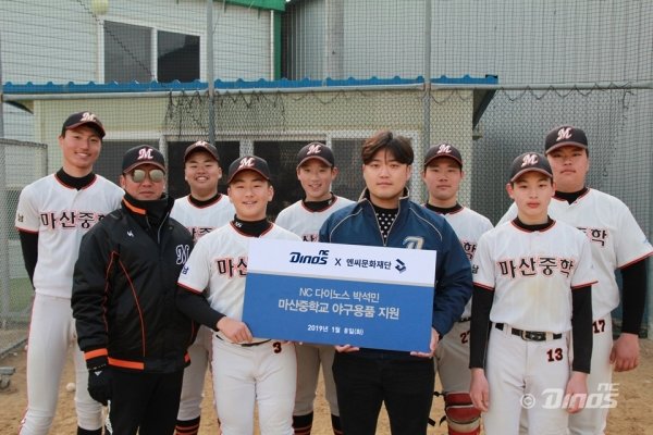프로야구 NC 다이노스 박석민(34)이 엔씨문화재단(이사장 윤송이)과 함께 연고지역 8개 중학교 야구부(창원신월중, 마산동중, 마산중, 합천야로중, 김해내동중, 양산원동중, 거제외포중, 울산제일중)에 1억원 상당의 야구 용품을 기부했다.