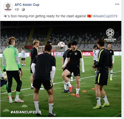 아시아축구연맹(AFC)이 대회 참가 선수 중 최고 몸값을 자랑하는 스타 손흥민(27, 토트넘 핫스퍼)의 중국 전 대비 훈련 모습을 공개하며 관심을 보였다.