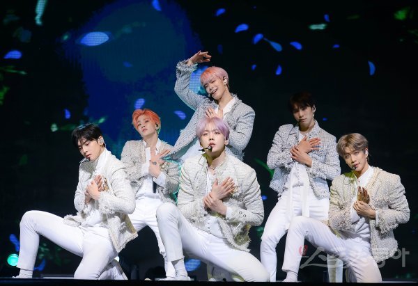 그룹 아스트로(ASTRO)가 16일 서울 강남구 삼성동 코엑스 아티움에서 열린 첫 정규 앨범 ‘All Light(올라잇)’ 발매 쇼케이스에서 열정적인 무대를 펼치고 있다.