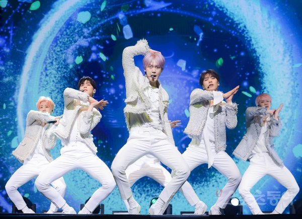 그룹 아스트로(ASTRO)가 16일 서울 강남구 삼성동 코엑스 아티움에서 열린 첫 정규 앨범 ‘All Light(올라잇)’ 발매 쇼케이스에서 열정적인 무대를 펼치고 있다.