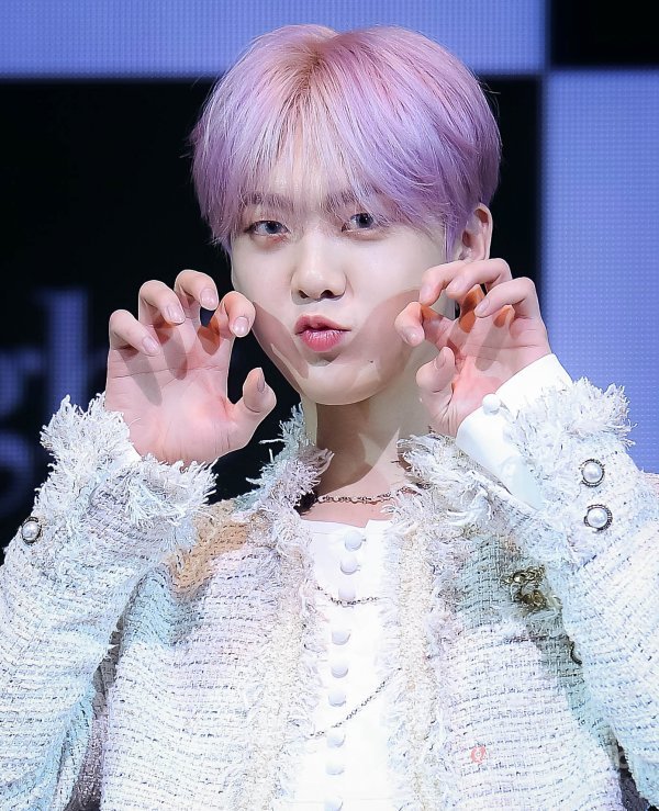 그룹 아스트로(ASTRO) 윤산하가 16일 서울 강남구 삼성동 코엑스 아티움에서 열린 첫 정규 앨범 ‘All Light(올라잇)’ 발매 쇼케이스에서 포토타임을 갖고 있다.