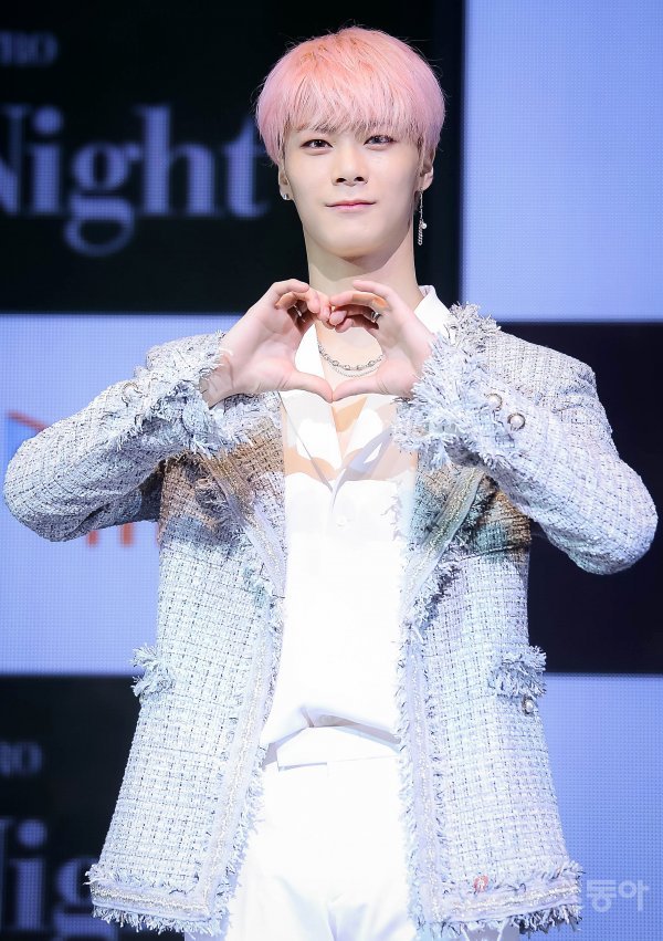 그룹 아스트로(ASTRO) 문빈이 16일 서울 강남구 삼성동 코엑스 아티움에서 열린 첫 정규 앨범 ‘All Light(올라잇)’ 발매 쇼케이스에서 포토타임을 갖고 있다.