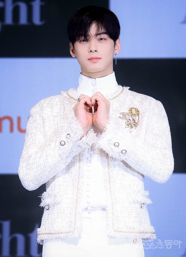 그룹 아스트로(ASTRO) 차은우가 16일 서울 강남구 삼성동 코엑스 아티움에서 열린 첫 정규 앨범 ‘All Light(올라잇)’ 발매 쇼케이스에서 포토타임을 갖고 있다.