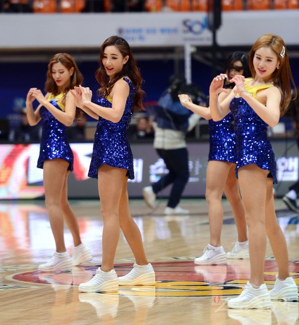 16일 인천 도원체육관에서 열린 ‘우리은행 2018-2019 여자 프로농구’ 아산 우리은행과 인천 신한은행 경기에서 치어리더가 공연을 펼치고 있다.
