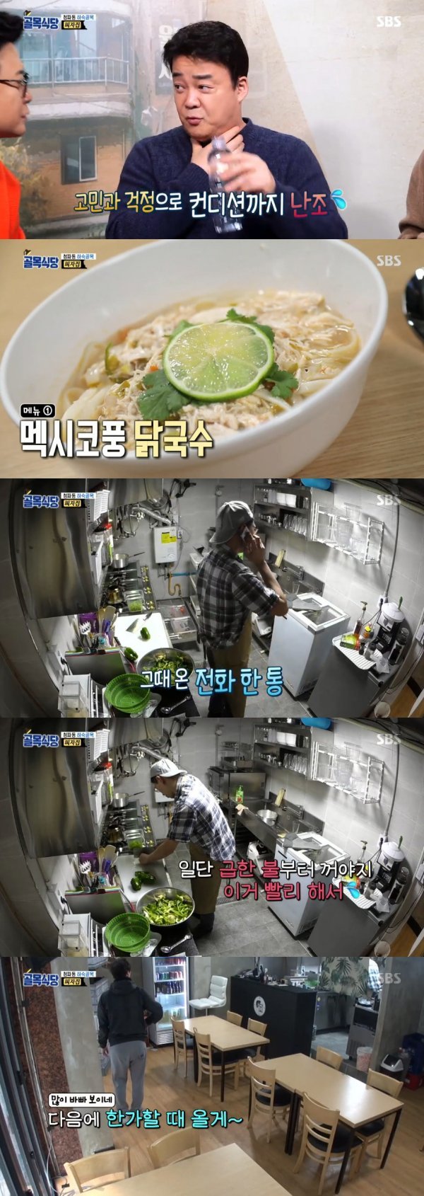 피자집은 멕시코풍 닭국수와 잠발라야를 준비했다. 피자집 사장은 재료를 준비하던 중 걸려온 전화를 반갑게 받으며 “방송 보고 연락을 하는 거냐”고 말했다. 이어 갑작스러운 지인의 방문까지 이어졌다.