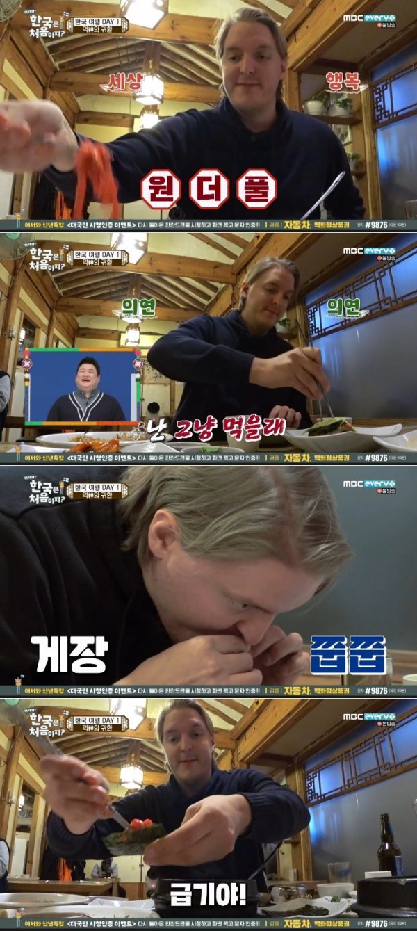 한정식 집을 찾은 핀란드 친구들. 빌푸는 다이어트 이후 줄어든 식사량 때문에 걱정했다. 조심스럽게 음식을 맛보던 빌푸는 육회에 결국 무장해제됐다. 그는 “원더풀”이라고 외치더니 “그냥 먹을래”라고 모든 것을 내려놓았다. 빌푸는 잡채와 게장에 이어 모둠 쌈을 제조하면서 다양한 ‘먹방’을 선보였다.