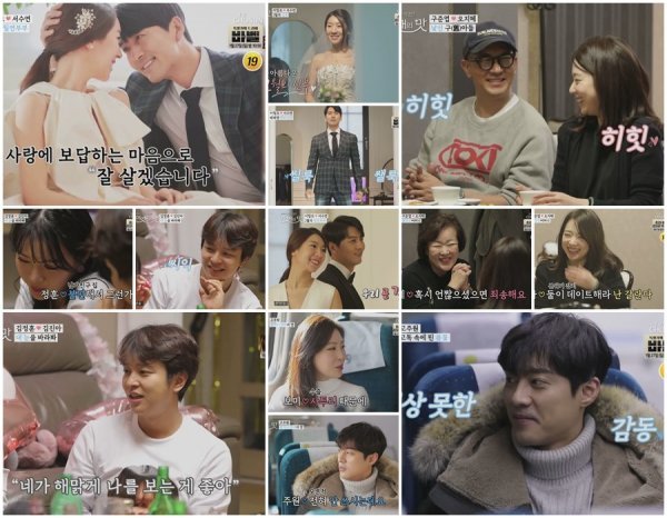 이필모-서수연은 결혼을 한 달 앞둔 상황에서 예복을 맞추기 위해 드레스숍을 찾았다. 여전히 꿀 떨어지는 눈빛을 보냈던 ‘필연 커플’은 콩닥콩닥하는 마음을 서로 나누며 기대에 부풀었던 상태. 이윽고 본격적인 ‘드레스 타임’이 시작됐고, 이필모는 입는 족족 완벽하게 소화하는 서수연을 보고 감탄을 금치 못하며 앞, 뒤, 양 옆 모두 살피는 등 눈을 떼지 못했다. 서수연 역시 멋있는 자태로 등장한 필모를 향해 연신 사진을 찍으며 행복을 만끽했다. 뒤이어 두 사람은 본격 웨딩촬영에 임해 이상적인 키 차이, 피부 톤까지 잘 맞는 천생연분 궁합을 자랑했고, 점차 가까워지는 달콤한 스킨십을 선보이며 아름다운 웨딩촬영을 마무리했다.