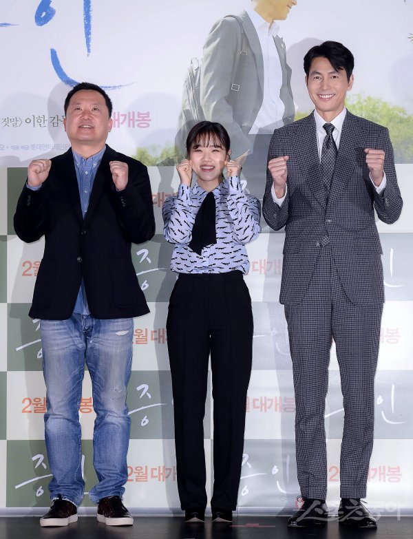 이한 감독과 배우 김향기, 정우성(왼쪽부터)이 21일 서울 광진구 롯데시네마 건대입구에서 열린 영화 ‘증인’ 언론시사회 및 기자간담회에 참석해 포즈를 취하고 있다.