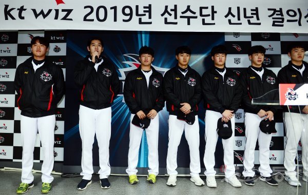22일 수원 kt위즈파크에서 프로야구 ‘kt 위즈 2019 선수단 신년 결의식’이 열렸다. 신인선수를 대표해 이대은이 소감을 밝히고 있다.