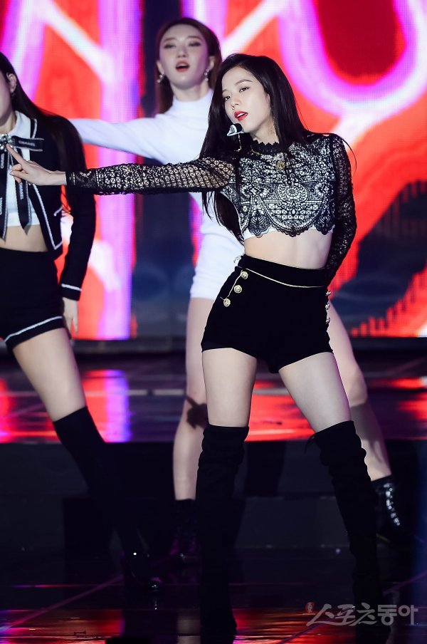 걸그룹 블랙핑크의 지수가 23일 서울 송파구 잠실실내체육관에서 열린 ‘제8회 가온차트 뮤직 어워즈’에서 열정적인 무대를 선보이고 있다.