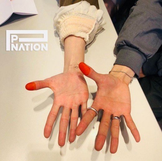 가수 싸이는 27일 자신의 인스타그램에 현아와 이던의 손을 촬영한 사진을 올렸다. 사진 속 현아 이던 커플의 엄지손가락은 붉게 물들었다.