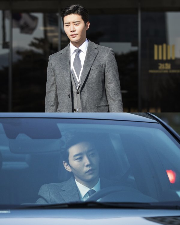 28일 공개된 김권(강성모 역)의 첫 스틸 속에는 검찰청 앞에 서있는 모습이 포착, 깔끔한 포마드 헤어와 완벽한 핏의 그레이 수트룩이 예비 시청자들의 시선을 옭아매고 있다.