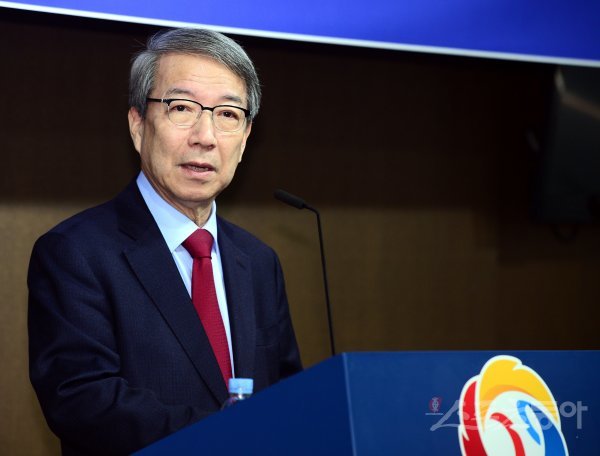 28일 서울 도곡동 한국야구회관에서 야구 국가대표 감독 선임 기자회견이 열렸다. 정운찬 KBO 총재가 국가대표 감독을 발표하고 있다.