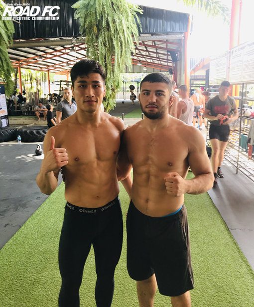 태국 ‘타이거 무에타이’에서 훈련에 임하고 있는 김민우(왼쪽)와 브루노 미란다. 사진제공 | 로드FC