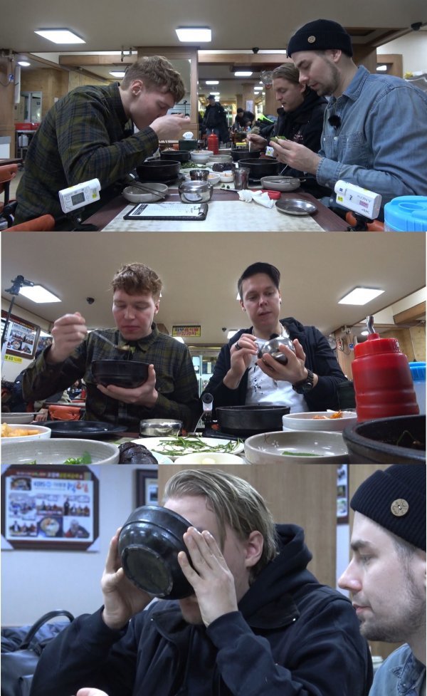 식당에 도착 후 빌레는 “불쌍한 동물들의 피를 마심으로써 힘을 가지게 되는 거야”라고 말해 살짝 불안해하는 모습을 보이기도 했지만, 순댓국을 맛본 친구들은 속이 편해짐을 몸소 실감했고 본격적인 흡입에 돌입했다. 식사 전 걱정하던 빌레는 “머리가 더 이상 안 아파”라고 말하며 한국의 해장 문화에 감탄했고, 빌푸는 “한국에선 국물 하나면 다 해결돼. 완전 내 취향이야”라고 말하며 그릇째 들고 완탕을 했다는 후문. 흔히 해장할 때 피자나 케밥을 먹는 핀란드 친구들은 한국에서 새로운 해장 문화를 배우고 대만족했다.