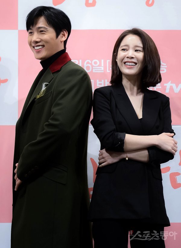배우 이상우와 손성윤(오른쪽)이 29일 서울시 강남구 임피리얼 팰리스 서울에서 열린 tvN 새 수목드라마 ‘진심이 닿다’ 제작발표회에 참석해 포토타임을 갖고 있다.