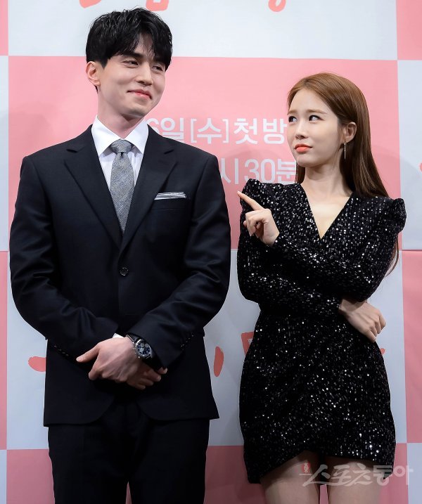 배우 이동욱과 유인나(오른쪽)가 29일 서울시 강남구 임피리얼 팰리스 서울에서 열린 tvN 새 수목드라마 ‘진심이 닿다’ 제작발표회에 참석해 포토타임을 갖고 있다.
