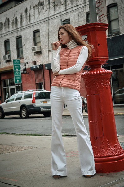 겨울여행 준비는 보온으로 시작해 보온으로 끝난다. 체온유지와 스타일을 동시에 잡은 아웃도어 트레블룩을 추천한다. 사진은 네파의 다운베스트를 입은 전지현. 사진제공|네파