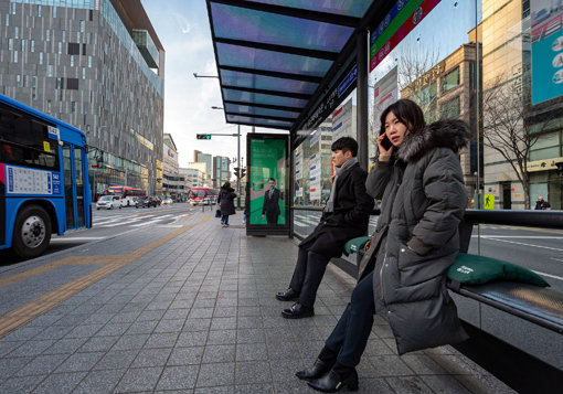 서울 시내 주요 버스정류장에 엉덩이를 따뜻하게 유지할 수 있는 ‘냉기 방지용 방석’이 비치돼 있어 큰 호응을 얻고 있다.