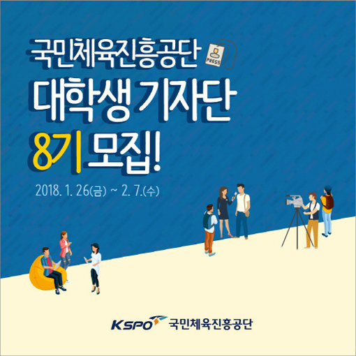 국민체육진흥공단이 제9기 대학생 기자단 ‘KSPO YOUNG 서포터즈’를 모집한다. 3월 1일부터 10월 31일까지 활동할 기자단은 공단 사업 전반에 대한 이슈와 스포츠, 건강 등 유용한 정보를 카드뉴스 및 영상 등 멀티미디어 콘텐츠로 제작하고 홍보하는 역할을 맡게 된다. 모집분야는 리포터, 크리에이터, 멀티미디어 등으로 기사작성, 사진촬영, 뉴미디어 콘텐츠 기획 등 부문별 맞춤 교육이 진행된다. 모집기간은 2월 14일까지로 세부 사항은 국민체육진흥공단 공식 블로그를 참조하면 된다.