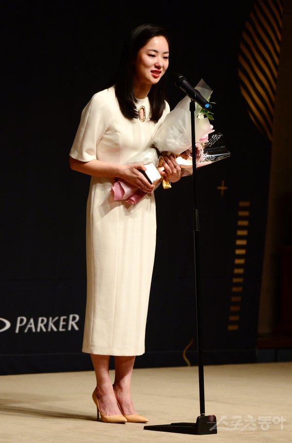 올해의 발견상을 수상한 전여빈이 소감을 밝히고 있다.