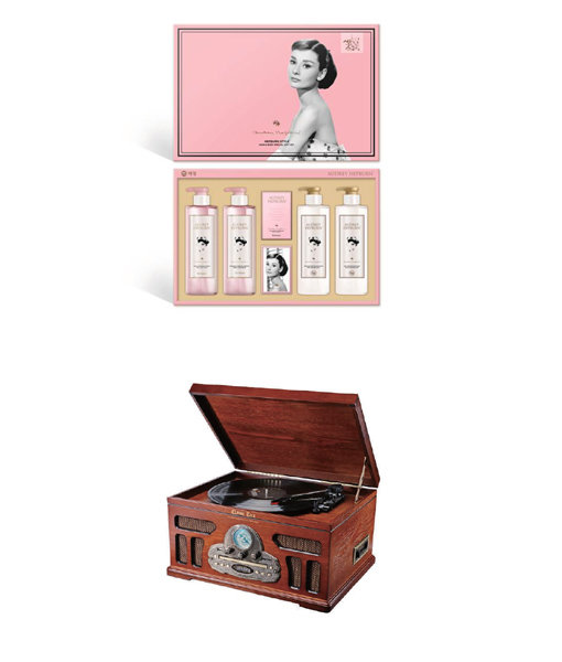 애경 ‘오드리 햅번 컬렉션’(위쪽)과 GS25 ‘클래식 턴테이블’.