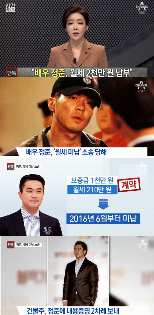 한편 앞서 채널A는 정준이 임대 계약을 맺은 건물의 월세를 내지 않아 건물주에게 최근 소송을 당한 것으로 확인됐다고 보도했다.