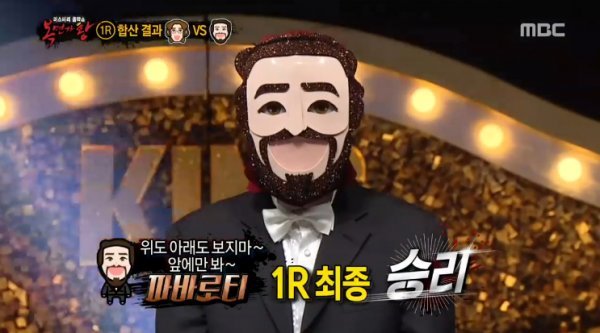 ‘복면가왕’ 파바로티가 1라운드에서 존 레논을 상대로 승리했다.