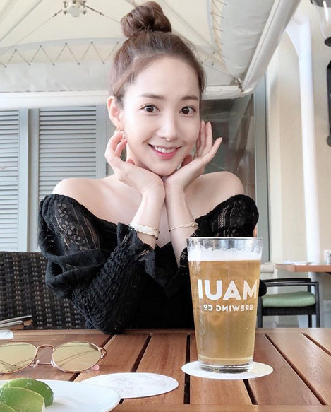 공개된 사진에는 음료 앞에서 꽃받침 포즈를 취한 박민영의 모습이 담겨 있다. 그는 옅은 메이크업과 올림 머리로 \'예쁨\'을 과시했다.