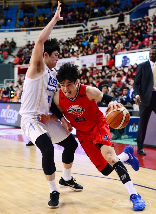 6일 울산 동천체육관에서 열린 ‘2018-2019 SKT 5GX 프로농구’ 울산 모비스와 전주 KCC의 경기에서 모비스 이대성이 KCC 이정현의 수비를 앞에 두고 돌파를 시도하고 있다.