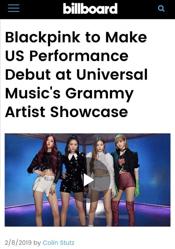 블랙핑크가 유니버설뮤직그룹(UMG)의 산하 레이블 ‘인터스코프’를 대표해 2019 유니버설뮤직그룹 그래미 아티스트 쇼케이스 무대에 오른다.