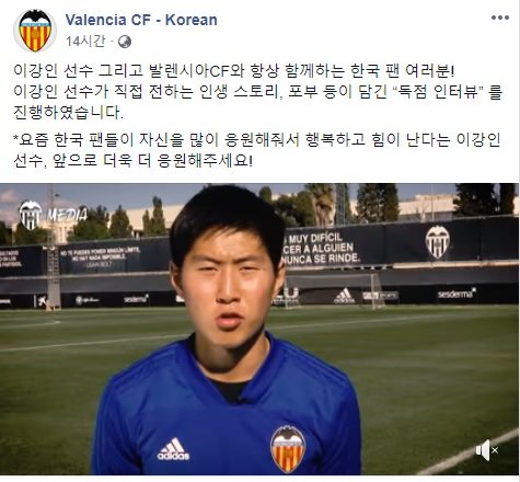 이어 한국 축구 팬들에게 “항상 응원해주셔서 힘이 난다. 특히 경기장에 태극기를 볼 때마다 행복하고 더 열심히 해야겠다는 생각이 든다. 여러 경험을 하고 배워서 발렌시아와 한국 축구에 큰 도움이 되고 싶다”고 덧붙였다.