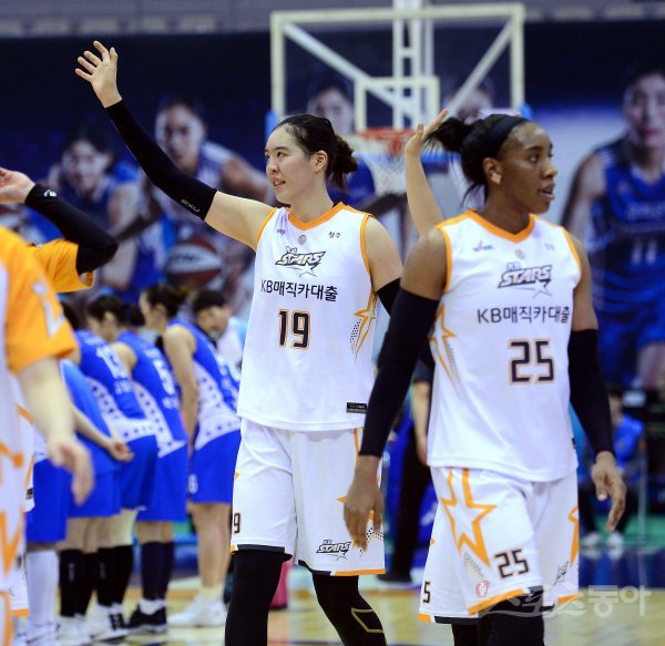 KB스타즈는 지난 9일 청주체육관에서 열린 아산 우리은행과의 ‘우리은행 2018~2019 여자프로농구’ 정규리그 홈경기에서 81-80으로 극적인 승리를 거뒀다.