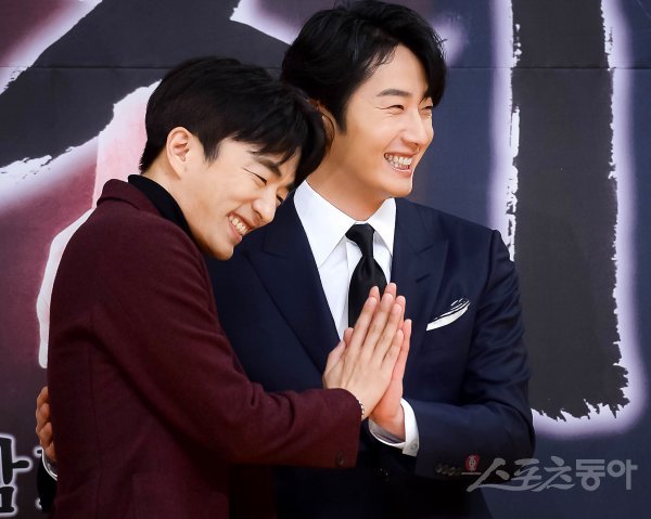 배우 정문성과 정일우(오른쪽)가 11일 서울 양천구 목동 SBS사옥에서 열린 SBS 새 월화드라마 ‘해치’ 제작보고회에서 포즈를 취하고 있다.