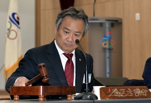 11일 충북 진천 선수촌에서 ‘2019 정기 대의원 총회’가 열렸다. 이기흥 대한체육회장이 총회 개회를 선언하고 있다.