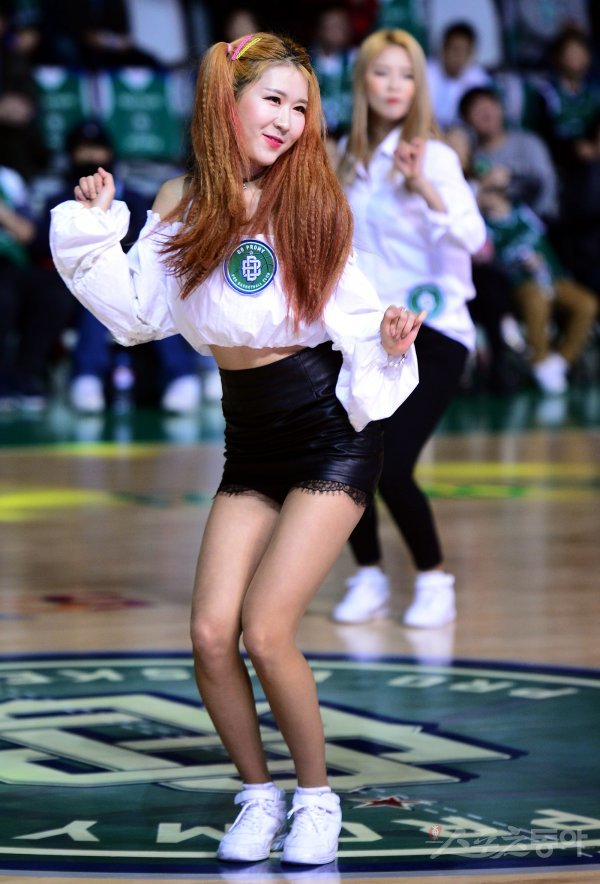13일 강원도 원주종합체육관에서 열린 ‘2018-2019 SKT 5GX 프로농구’ 원주 DB와 부산 kt의 경기에서 DB 치어리더가 화려한 공연을 선보이고 있다.