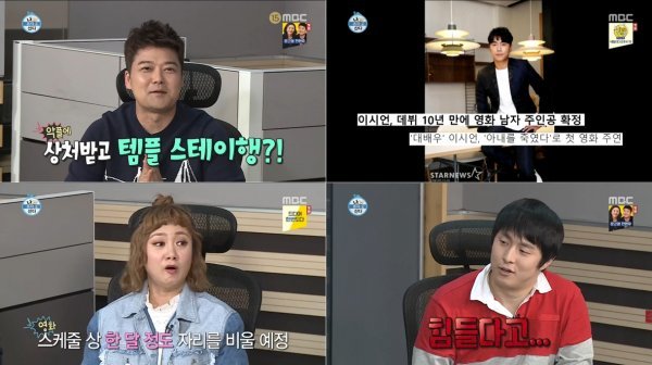 15일 방송된 MBC ‘나혼자산다’에서는 ‘얼장’ 이시언의 근황이 언급됐다. 멤버들은 이시언의 부재에 대해 언급했고 전현무는 “악플 때문인가 했는데 좋은 일이 생겼더라. 데뷔 10년 만에 주연을 맡았다”고 알렸다. 그러면서 “한 달 정도 자리를 비울 예정”이라고 밝혔다.