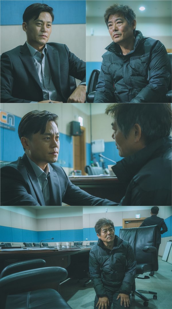 그 가운데, 공개된 스틸컷에는 방송국에서 만난 우현과 동국의 과거가 포착됐다. 국민 앵커로 사랑받던 우현과 서울경찰청 광수대 독보적 에이스였던 동국. 어쩐지 두 사람의 표정에는 미묘한 차이가 느껴진다. 간절하게 무릎을 꿇은 동국을 다독이던 우현은 이내 자리를 뜨고, 홀로 남은 동국만이 설움 가득한 표정으로 남아있다.