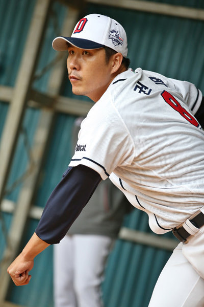 두산 베어스 권혁(36)이 17일 일본 오키나와 구시카와구장에서 이적 후 첫 불펜피칭을 했다.