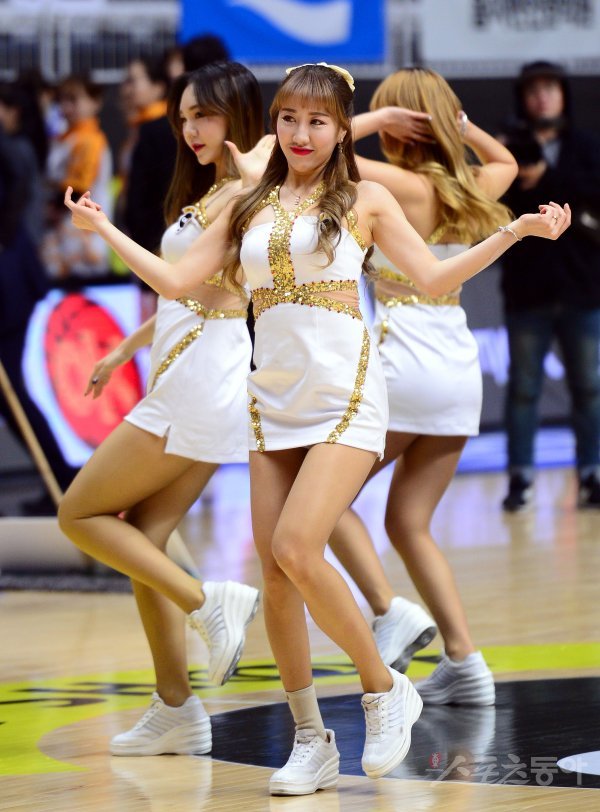 14일 경기도 서수원 칠보체육관에서 열린 ‘우리은행 2018-2019 여자프로농구’ 수원 OK저축은행과 청주 KB의 경기에서 OK저축은행 치어리더가 화려한 공연을 선보이고 있다.