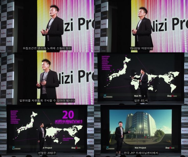 박진영은 지난 7일 Nizi Project(니지 프로젝트) 프레스 컨퍼런스에서 연사로 무대에 올라 JYP 엔터테인먼트와 소니뮤직이 합작으로 만들어 낼 걸그룹에 대해 설명했다.